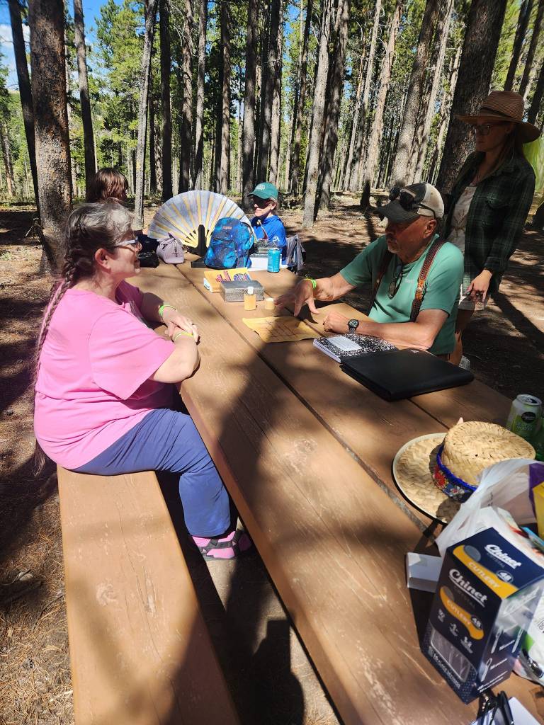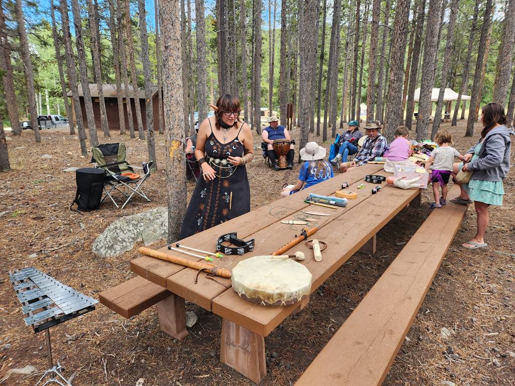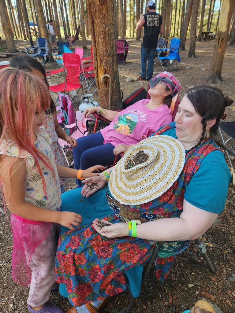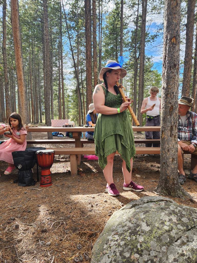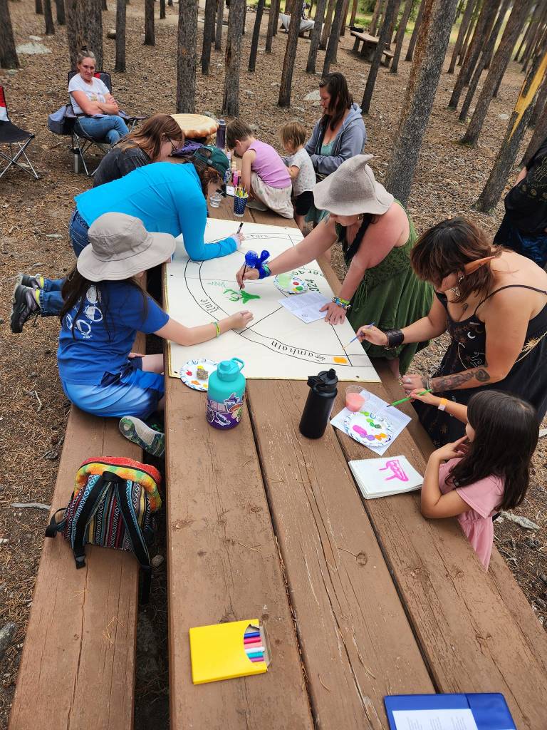 Welcome!Opening ritualAnnual Wheel of the Year tapestry, ready to be paintedJoyful Noise ActivityChildren’s Bead-Up ActivityAdults’ Mead-Up ActivityHandmade items for sale from our vendorsYoga in the mornings by DelinaHome for the Ancestors craftYounglings at play!Candle Magick WorkshopLive Music: Banjo in the WoodsGeomancy readings by DaveTarot readings by ShayneFeather tapping by ShayneLive Music: KnucklesNew friendships were forged!Dirt and pinecone spa by younglings LOLPotluck entree by RickPotluck feast!Cernunnos RitualEach night, we gathered around the fire for stories and song during the Bardic Circle and drumming afterwardOutdoor skills and tips for the wandering Pagan by DaveCompleted Wheel of the Year tapestry, painted and signed by everyone who came to Wonderwood 2024Hail to our Wyoming Mother Mountain! See you next year!